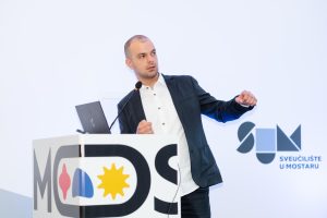 Program Znanstvenog dana otvoren je svečanim obraćanjima predstavnika Sveučilište u Mostaru, prof. dr. sc. Sanje Bijakšić, pomoćnice rektora za međunarodnu suradnju, te prof. dr. sc. Daniela Vasića, predsjednika konferencije MoStart 2026. Prof. dr. sc. Sanja Bijakšić istaknula je kako je znanstveni dan MoStart konferencije posvećen budućnosti europskog istraživačkog i inovacijskog prostora. „Razmjena ideja, dijeljenje znanja i težnja prema napretku temelj su razvoja europskog prostora“, poručila je prof. dr. sc. Bijakšić, naglasivši kako upravo konferencije poput MoStarta stvaraju prostor za povezivanje akademske zajednice, istraživača i stručnjaka te otvaraju raspravu o ključnim pitanjima digitalne transformacije, znanosti i inovacija.